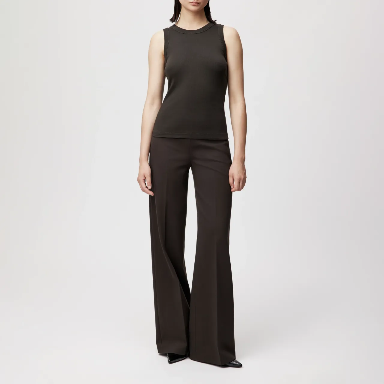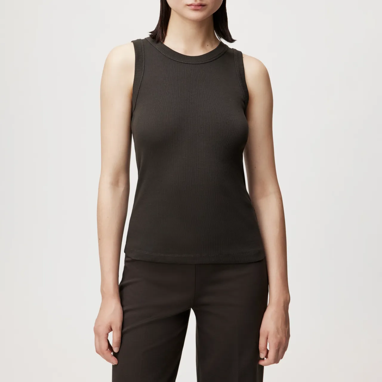 OLINA is een klassieke tanktop met ronde halslijn en smalle pasvorm. Het eenvoudige ontwerp en de klassieke lengte maken het een veelzijdige basic. Gemaakt van puur katoen in een fijne ribgebreide stof, biedt het een zachte touch en een matte uitstraling.