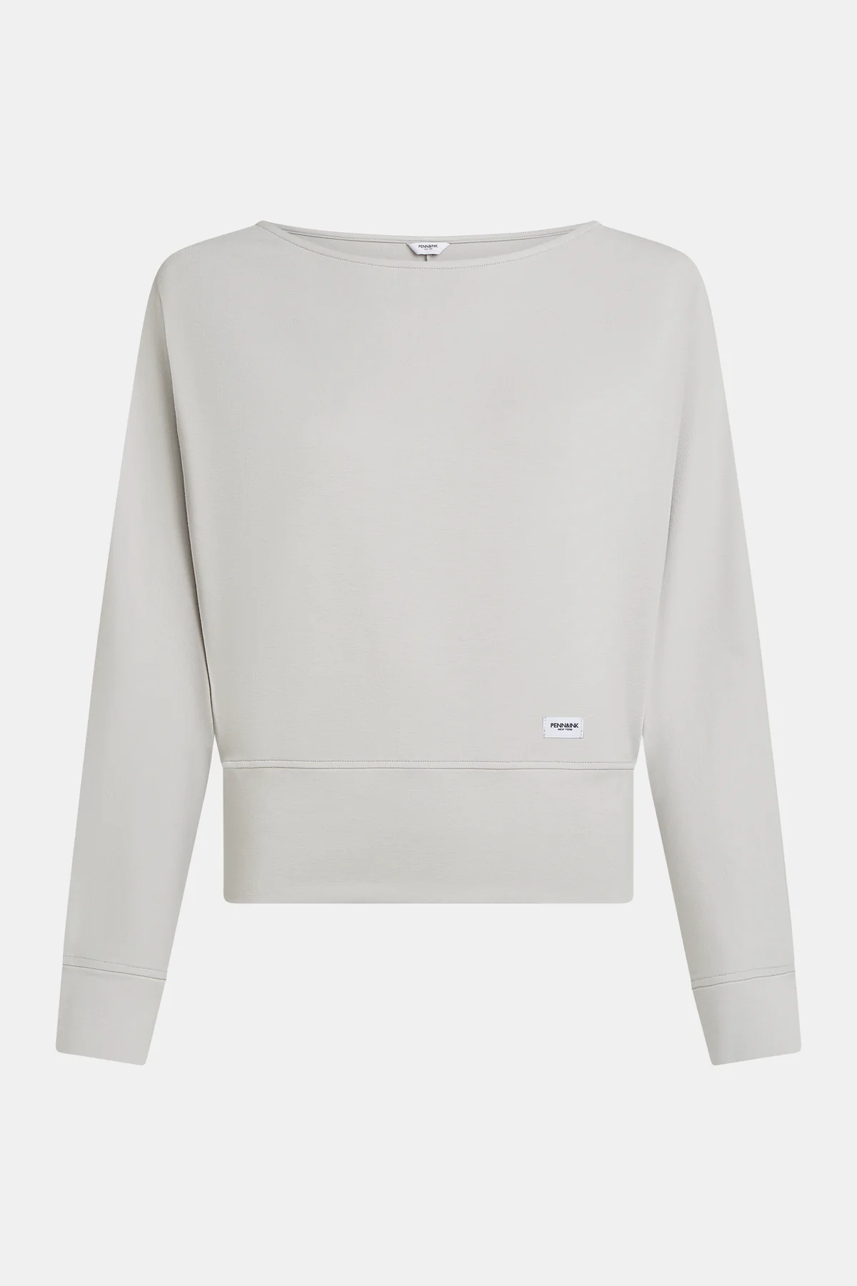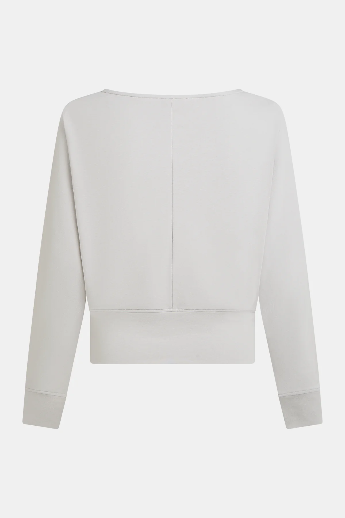 Deze cropped sweater heeft een relaxte pasvorm en een strak, minimalistisch silhouet. Gemaakt van een gladde, zachte stof, biedt hij comfort en een moderne, verfijnde uitstraling. De wijde halslijn en subtiele merkdetails maken dit item perfect voor een moeiteloze dagelijkse look.