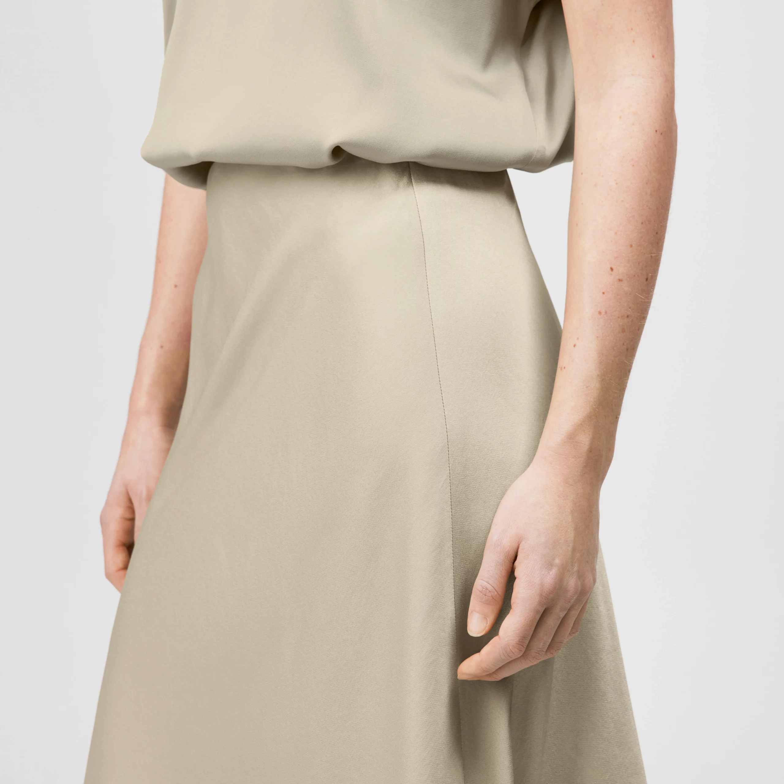 URA is een elegante slip-rok in midilengte. De vrouwelijke A-lijn rok wordt mid-waist gedragen. De tijdloze stijl biedt een verscheidenheid aan combinatiemogelijkheden. Gemaakt van een hoogwaardige en vloeiende satijn.
